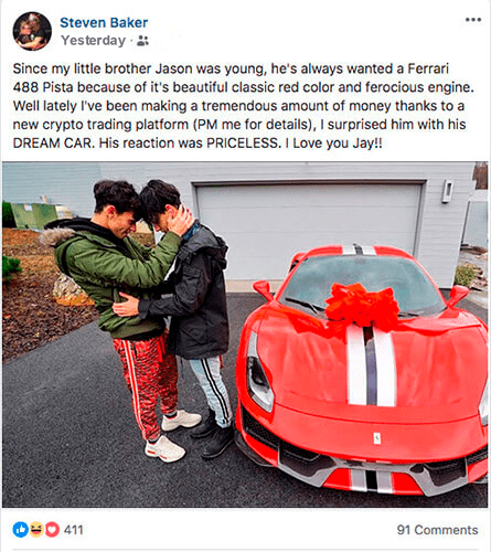 Steven Baker brugte fortjenesten han tjente fra Bitcoin System at købe sin lillebror hans drømme bil. Hvilken inspirerende måde at bruge rigdom til godt!