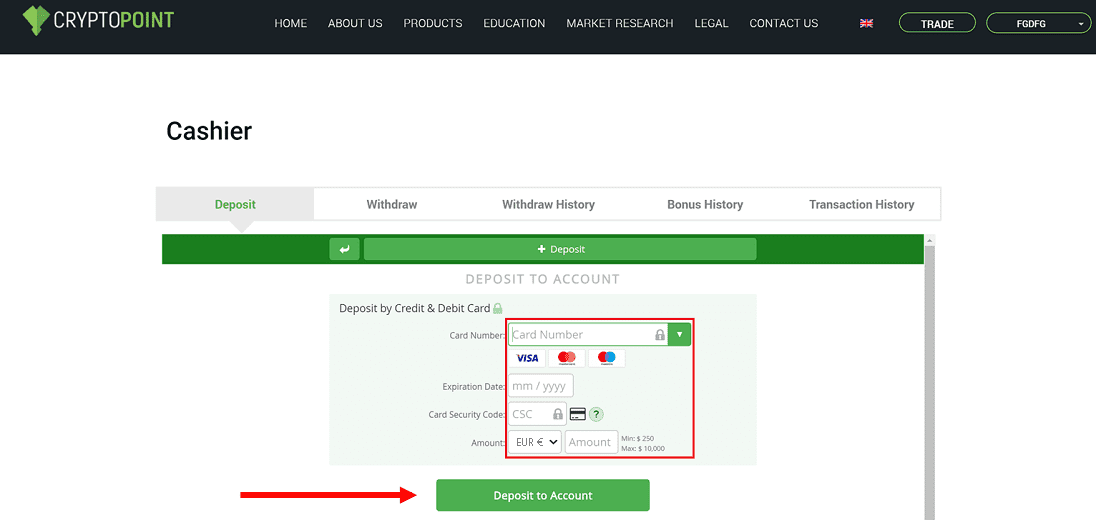 Du kan finansiere din konto via kreditkort eller bankoverførsel.
